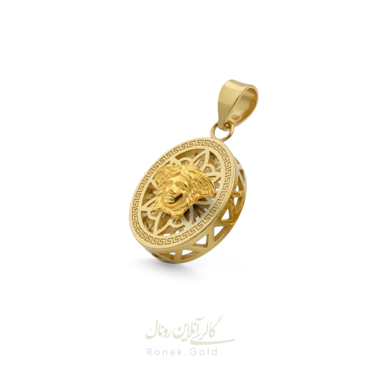 مدال مینی ورساچه بیضی با طراحی خاص و نمادین، جلوهای باشکوه و منحصربهفرد دارد. چهره مدوسا در مرکز این آویز قرار گرفته و با جزئیات دقیق، قدرت و زیبایی را به نمایش میگذارد. قاب دایرهای با طرحهای هندسی دور تا دور مدوسا، به این مدال جلوهای کلاسیک و لوکس بخشیده است. وزن سبک و مناسب این مدال، آن را به گزینهای ایدهآل برای هدیه یا استفاده روزمره تبدیل کرده است.